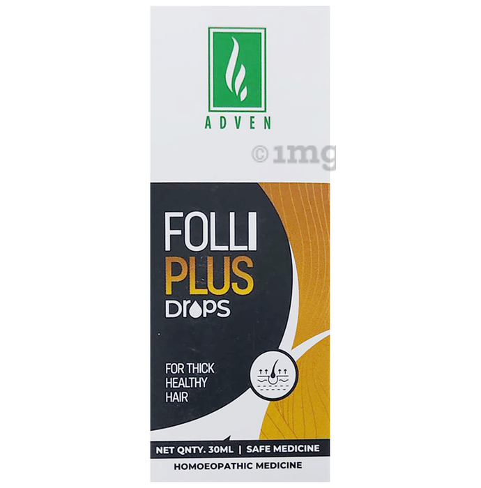 Adven Folli-Plus Drop prevents hair fall and stimulates hair growth. It strengthens the root shafts and prevents hair fall. It is rich in phytochemicals like eclalbo saponins and wedelolactone, which help promote hair growth, strengthen the hair root, and keep hair healthy. It is a natural hair tonic used extensively in Ayurveda and is an effective ingredient for managing the hair and scalp. It strengthens hair follicles and promotes hair growth.