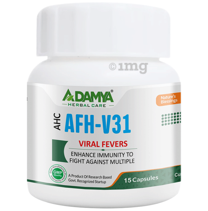 AFH -V31 Capsule designed as an immune booster with broad-spectrum anti-viral properties. AFH V31 contains natural ingredients of a well-balanced combination of Medicinal Herbs. It supports the immune system and may help alleviate symptoms like body ache, weakness/fatigue, headache, cough, nasal congestion and general discomfort.