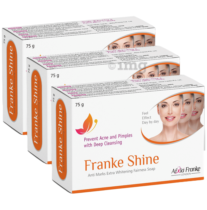 Afxia Franke Shine (75gm Each) is a bathing bar formulated with Chandan, Kesar, Camphor, and Aloe Vera. This blend may help support skin hydration and comfort while gently cleansing. With ingredients that can assist in maintaining a refreshed feel and clear-looking skin, it is crafted to help support skin softness and a radiant appearance with regular use.