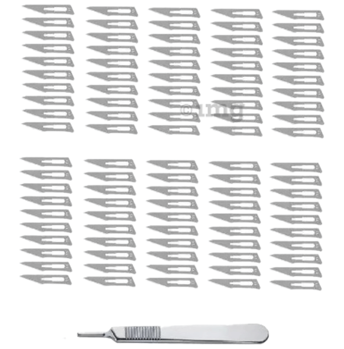 Agarwals Scalpel Handle no.3 with Sai Plus Life Carbon Steel Surgical Scalpel Blades no. 11 (100)