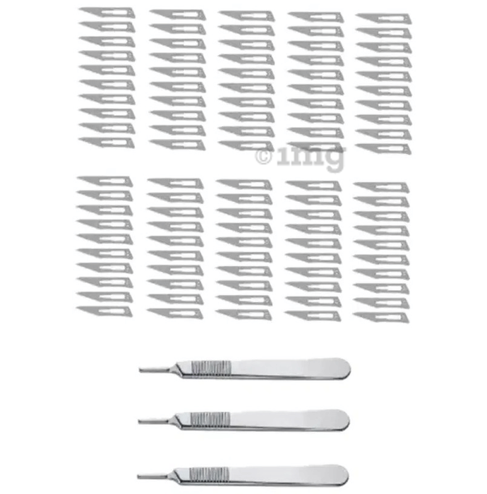 Agarwals Scalpel Handle no.3 with Sai Plus Life Carbon Steel Surgical Scalpel Blades no. 11 (100)