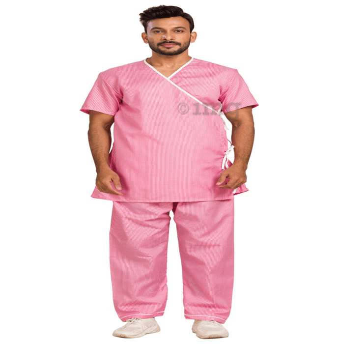 Information about Agarwals Unisex Patient Dress Front Open Overlap Pink Checks XXL