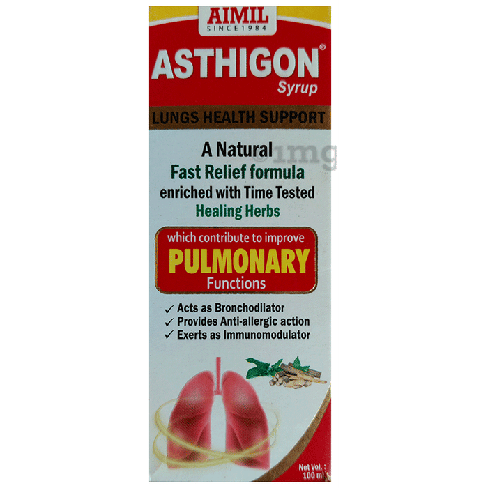 Aimil Asthigon Syrup is an Ayurvedic proprietary formulation crafted to help support respiratory health and lung function. Enriched with traditional herbs like Vasaka, Yashtimadhu, Bharangi, and Jufa, it may assist in maintaining respiratory comfort and easing mild respiratory discomfort. Designed for use in helping manage conditions like allergic conditions and rhinitis, the syrup offers a holistic approach to respiratory wellness. With its gentle yet effective herbal composition, it is suitable for daily use as directed by a physician.