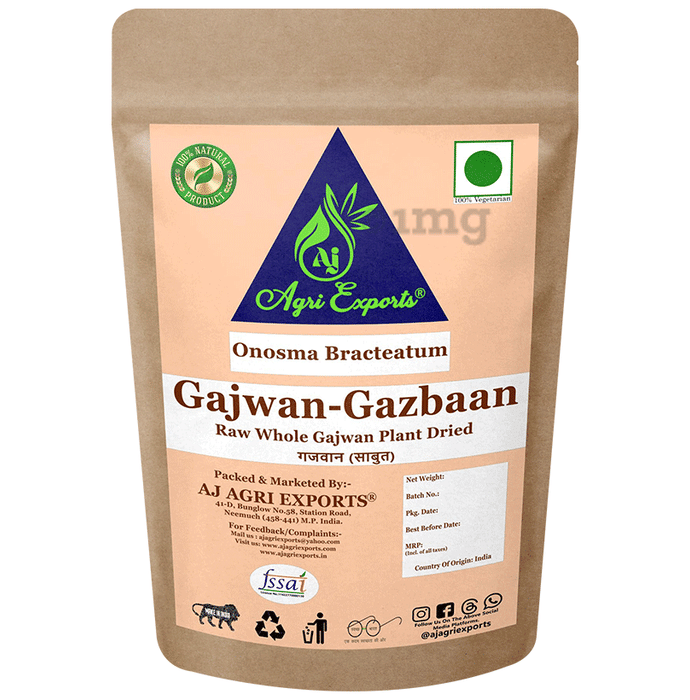 Aj Agri Exports Gajwan is a herbal product which may help maintain respiratory and digestive wellness. It is commonly used in Ayurvedic practices and may help in managing discomfort related to digestion, acidity, and respiratory issues. The herb contains natural compounds that may help in maintaining internal balance and overall health.