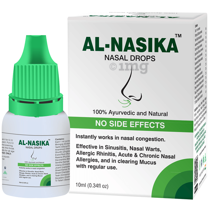 Al-Nasika Nasal Drops Our nose is the door to the brain. Al-Nasika is a versatile Ayurvedic oil-based nasal drop that helps to manage nasal congestion, allergies, and sinusitis. It works almost instantly in nasal congestion. It is effective in sinusitis, nasal warts, allergic rhinitis, acute and chronic nasal allergies, and in clearing mucus with regular use.