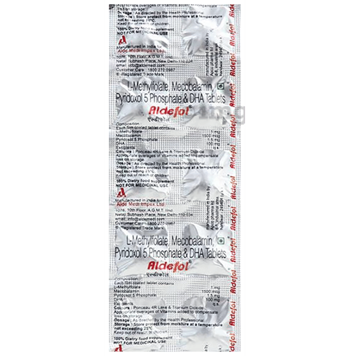 Aldefol Tablet is a nutritional supplement that helps in maintaining the overall health of the body and has antioxidant properties protecting the cells from oxidative damage. It improves energy production in the cells and stengthens the nervous system.