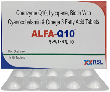 Alfa Q10 Tablet is a multivitamin and multimineral supplement help in cell growth and maintenance. It is useful in performing normal body functions, make up the deficiencies in the body and protection of cells from wear and tear. It helps in promoting the blood production in body.