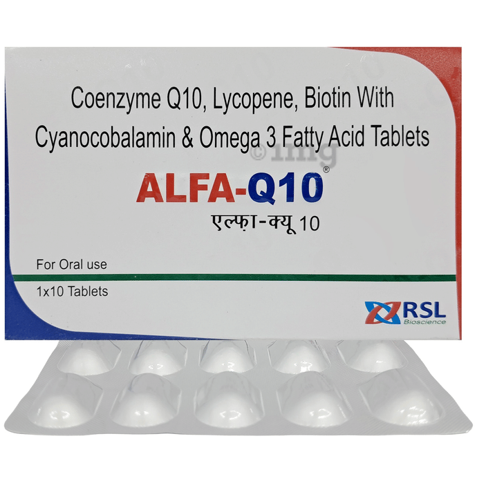 Alfa Q10 Tablet is a multivitamin and multimineral supplement help in cell growth and maintenance. It is useful in performing normal body functions, make up the deficiencies in the body and protection of cells from wear and tear. It helps in promoting the blood production in body.