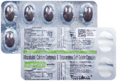 Alfavit Advance Capsule combines a comprehensive blend of key ingredients, including calcitriol for bone health, calcium carbonate for overall bodily functions, omega-3 fatty acids for heart and brain health, methylcobalamin for nerve function, folic acid for DNA synthesis, and boron for joint health. This unique composition enriches the supplement, offering a well-rounded approach to supporting bone health, the cardiovascular and nervous systems, and overall well-being.