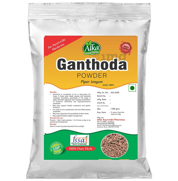 Alka Ayurvedic Pharmacy Ganthoda Powder is also popularly known as ganthoda powder. ganthoda powder is made from fresh ingredients and processed in highly maintained hygienic facilities.