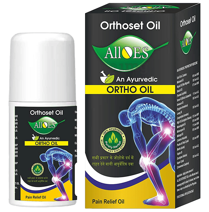 Alloes Ortho Oil is a polyherbal formulation containing natural extracts. It relieves pain naturally with deep tissue penetration made possible by the small structured molecules of natural oils and added penetration enhancers. It stimulates blood circulation and may alleviate stiff muscles. It helps soothe muscle pain and enables the proper working of the joints. It caters to the pain related to lumbago, sciatica or spondylitis.