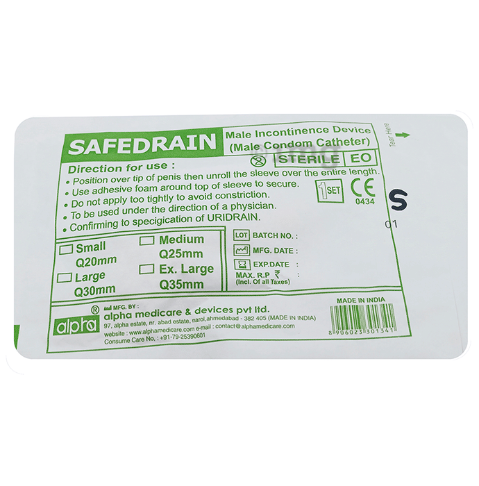 Alpha Safedrain Male Incontinence Device is a latex device that goes over the penis instead of into the urethra. It is a discreet and easy-to-use solution that is worn externally.