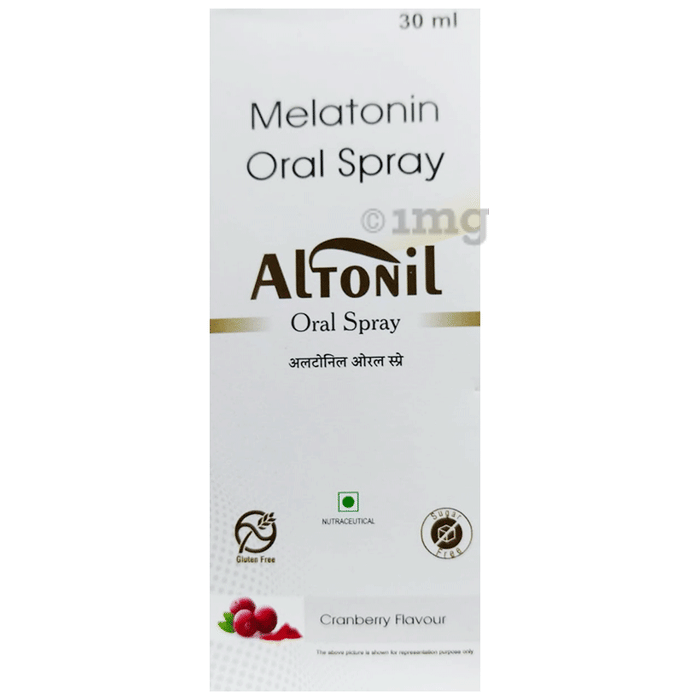Altonil Oral Spray Cranberry is a liquid dietary supplement containing melatonin, a hormone naturally produced by the pineal gland in response to darkness. Melatonin helps regulate the sleep-wake cycle and is often used by individuals experiencing irregular sleep patterns. This formulation is designed for ease of use, providing a convenient oral spray format that allows for quick absorption. It is gluten-free and sugar-free, making it suitable for individuals with specific dietary requirements.
