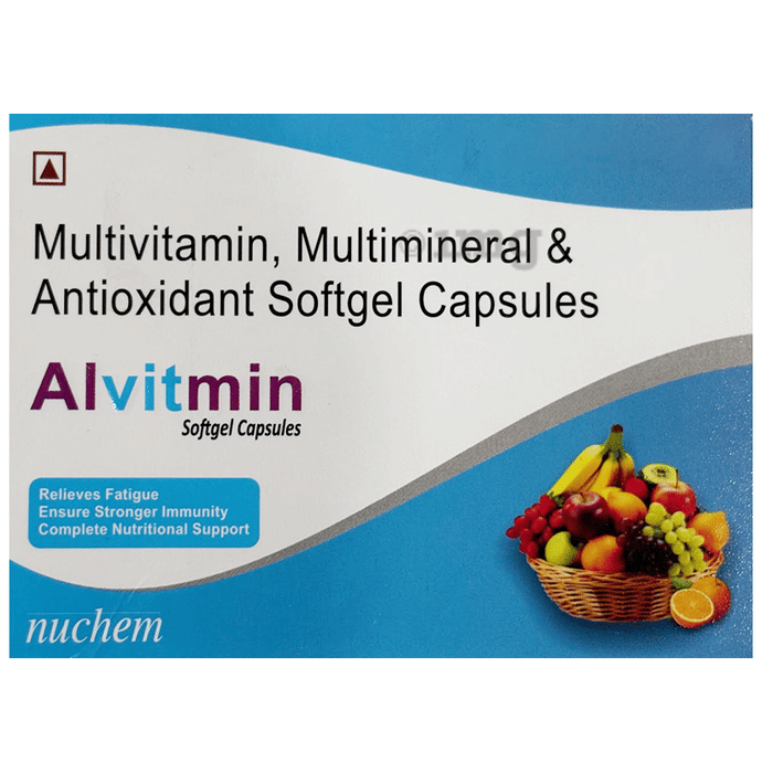 Alvitmin Softgel Capsule is a carefully designed nutraceutical supplement combining essential vitamins, minerals, and antioxidants to support overall daily nutrition. Each softgel capsule provides a balanced mix of water- and fat-soluble vitamins along with minerals such as calcium, magnesium, zinc, copper, and iodine that can help meet nutritional requirements. The inclusion of vitamin C, vitamin E, and beta-carotene may support antioxidant protection, while B-complex vitamins can contribute to energy metabolism and cellular functions. With lecithin and other nutrients, this formulation may provide comprehensive nutritional support for daily vitality and wellness.