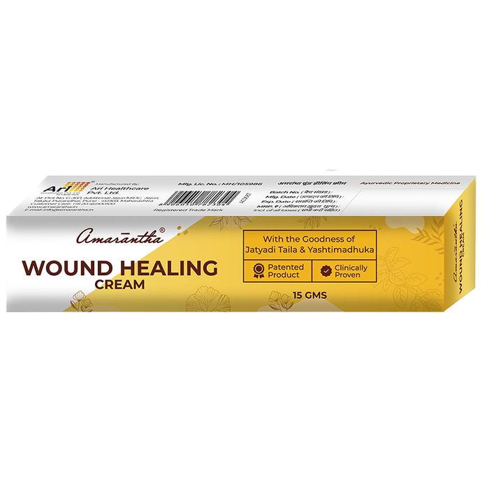 Amarantha Wound Healing Cream is made up of ingredients that support the wound-healing process. It has Ayurvedic ingredients like Jatyadi oil, Mandukaparni, Ashyattha and Yashad bhasma which support wound healing.