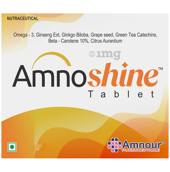 Amnoshine Tablet is a nutraceutical formulation designed with a blend of essential vitamins, minerals, fatty acids, probiotics, and herbal extracts that may help support overall health and wellness. The combination of Omega-3 fatty acids, Panax ginseng extract, Ginkgo biloba, and grape seed extract provides a comprehensive approach to daily nutritional support. It can contribute to maintaining energy levels, immune function, and cellular well-being. Additionally, the inclusion of vitamins, minerals, and antioxidants can help in supporting multiple physiological functions for balanced health.