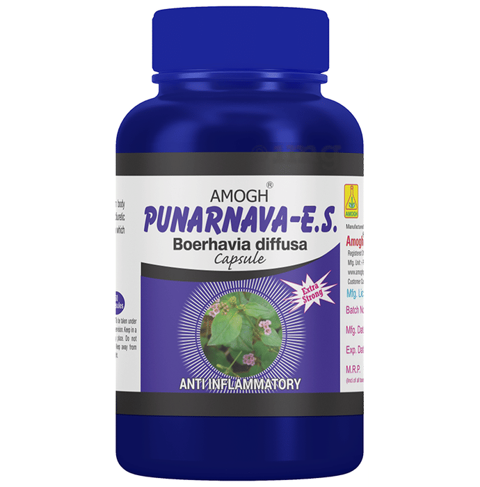 Amogh Punarnava E.S. Boerhavia Diffusa Capsule It is a balanced combination of Punarnava dry extract and raw punarnava. Punarnava has powerful analgesic and anti-inflammatory properties, which are beneficial in reducing joint and muscle pain, thereby reducing the chances of chronic autoimmune inflammatory issues.