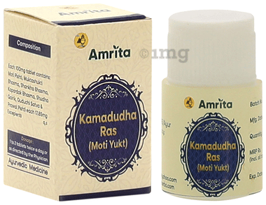 Amrita Kamdudha Ras Tablet is a herbal-mineral formulation. It soothes hyperacidity, provides cooling relief in ulcers, stimulates the production of digestive enzymes and supports digestive system health.