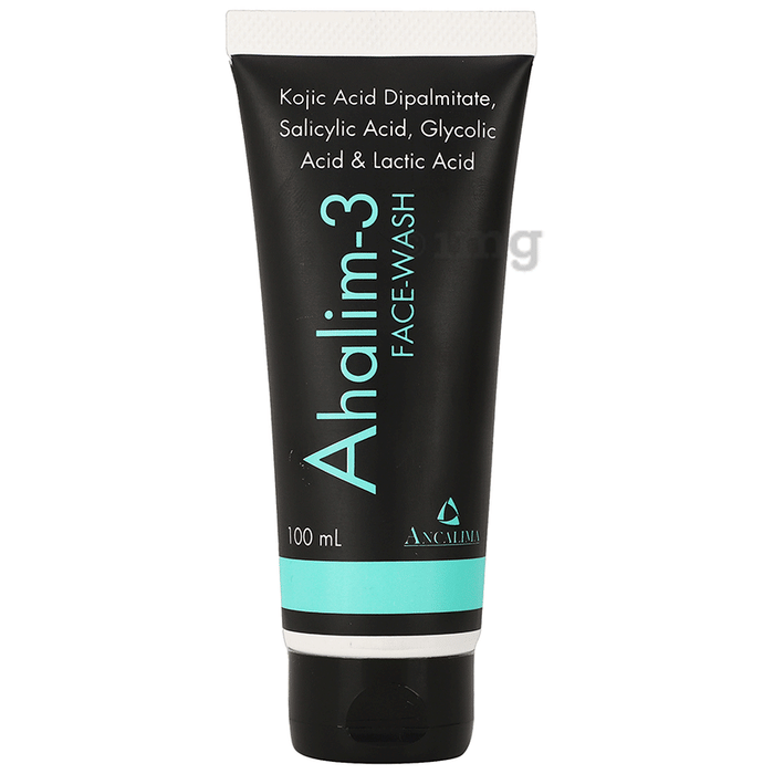 Ancalima Ahalim 3 Face Wash is a skin-brightening face wash containing special actives, that deep cleanse the skin and may help minimise melanin production which causes skin darkening. This facial cleanser helps improve skin tone, fade tan, and eliminate dullness. This face wash contains ingredients like kojic acid dipalmitate, vitamin C, and alpha/beta hydroxy acid along with niacinamide which may help to brighten the skin and restore skin's natural complexion. It efficiently cleans the skin and does not disrupt skin's moisture balance and leaves the skin feeling soft and supple.