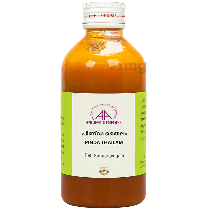 Ancient Remedies Pinda Thailam is an Ayurvedic formulation crafted with carefully chosen botanicals and oils. This external application oil liquid can help support the management of joint discomfort, and burning sensations in the affected areas. The formulation combines the presence of Manjistha (Rubia cordifolia) and Sariva (Hemidesmus indicus), along with a nourishing base of sesame oil, castor oil, ghee, and Dhanyamlam, which may help pacify aggravated pitta dosha and provide a cooling effect to inflamed joints. With its composition of herbs and oils, this thailam may support joint flexibility and can help in managing discomfort naturally through Ayurvedic principles.