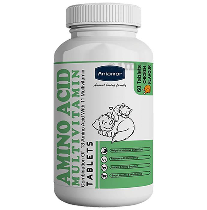 Aniamor Amino Acid Multivitamin Tablet Chicken Flavour contains a combination of 13 amino acids with 11 multivitamins. Aniamor provides the best multivitamin tablets for pets. It helps in the recovery of all deficiencies and also helps in proper digestion. It is ideal for the management of anaemia in pets.