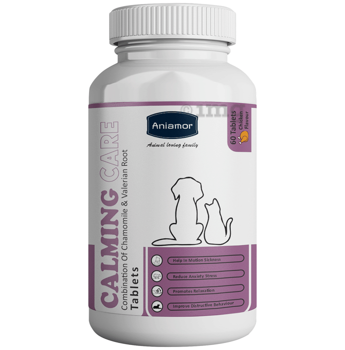 Aniamor Calming Care Tablets are formulated for dogs and cats to help manage behavioural responses and support a calm and balanced temperament. This combination of chamomile, valerian root, passion flower and other calming agents may help pets cope better with external stressors. The tablets are designed to help maintain emotional wellness, manage signs of restlessness, and support comfort during travel or unfamiliar situations. With daily use, they may help maintain a more relaxed and manageable behaviour pattern.