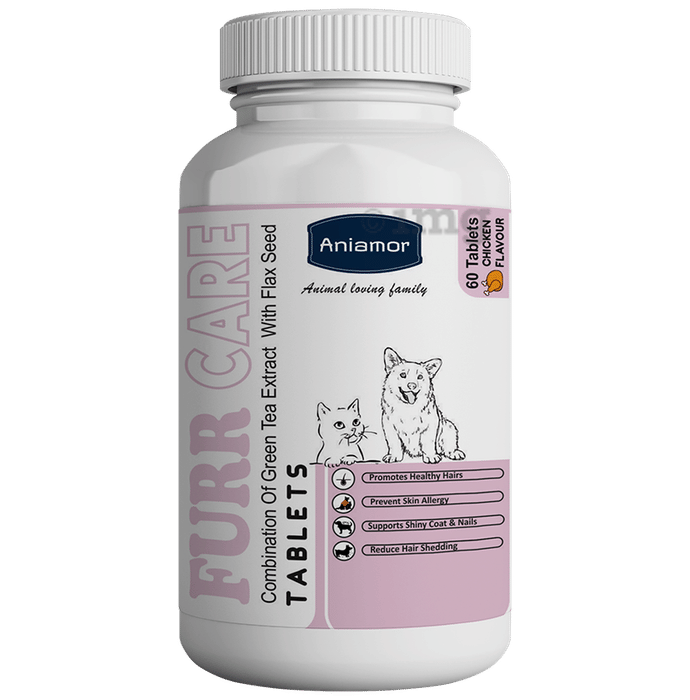Aniamor Furr Care Tablet Chicken Flavour are a combination of omega 3 and 6 with vitamin C which provide healthy skin and coat and also promotes healthy hair. Aniamor Furr Care tablets provide the best remedy for skin and coat which prevents dandruff and itchy scalps. Aniamor serves the best skin care supplements for pets that Reduce hair fall, and increase hair growth making hair stronger.