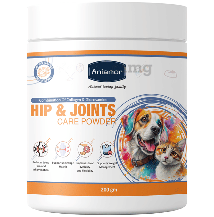 Aniamor Hip and Joints Care Powder is a comprehensive joint support supplement formulated for dogs and cats of all breeds. Enriched with a synergistic blend of collagen, glucosamine, chondroitin, MSM, green-lipped mussel extract, and other joint-loving nutrients, it is designed to help support joint flexibility, reduce inflammation, and aid in long-term mobility. This daily-use powder can help manage discomfort caused by ageing, injury, or wear and tear, allowing your pet to stay active and playful throughout their life.