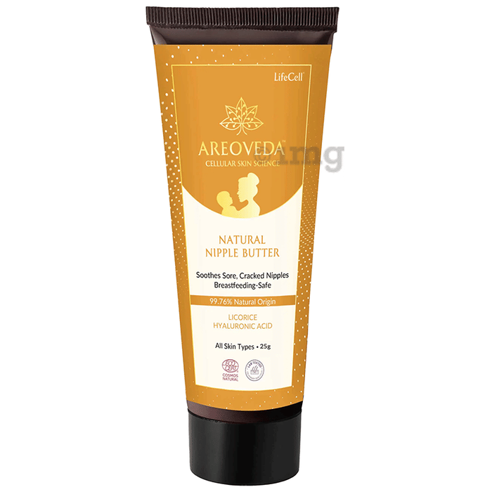 Areoveda Cellular Skin Science Turmeric Latte Natural Nipple Butter Cream (25gm Each) for All Skin Types is a gentle, plant-based solution specially formulated for breastfeeding mothers. It helps soothe sore, cracked nipples while forming a protective barrier against further dryness and irritation. Enriched with natural ingredients like Licorice Root Extract, Turmeric, and Ghee, it is suitable for both mom and baby and requires no rinsing before nursing.