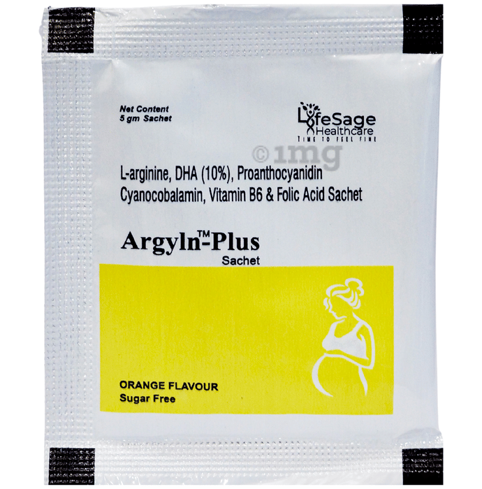 Argyln-Plus Sachet Orange Sugar Free is a dietary supplement formulated to support overall reproductive health and vitality in both men and women. This blend of ingredients, including L-Arginine, Proanthocyanidin, Cyanocobalamin (Vitamin B12), Vitamin B6, Folic Acid, and DHA, is designed to help maintain healthy circulation, energy levels, and general wellness. L-Arginine can help support nitric oxide production and vascular health. DHA contributes to cell membrane integrity and brain function. Proanthocyanidin offers antioxidant support, while Vitamin B6 and Folic Acid help maintain hormonal balance and energy production. This formulation is designed to support reproductive wellness, stamina, and metabolic function when consumed as part of a balanced lifestyle.
