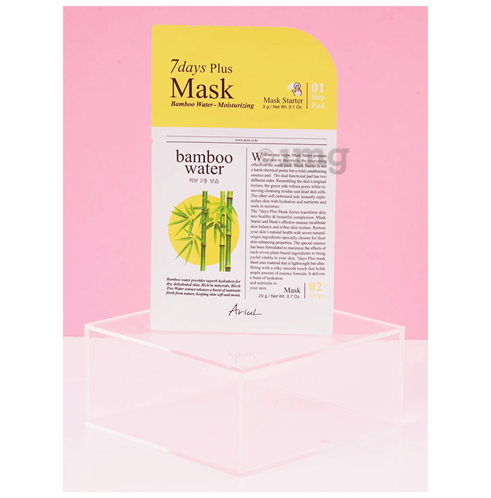 Ariul 7 Days Plus Mask (20gm Each) Bamboo Water helps to keep the skin smooth, supple, and plump. Bamboo extract protects the skin from oxidative stress and damaging UV rays while also replenishing collagen formation. It also helps to improve skin suppleness, moisture, and the reduction of fine lines and wrinkles.