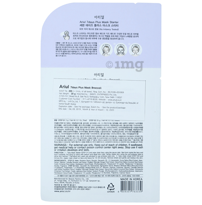 - Ariul 7 Days Plus Mask Broccoli is beneficial for revitalising the dry and dull skin and provides gentle exfoliation of the skin
