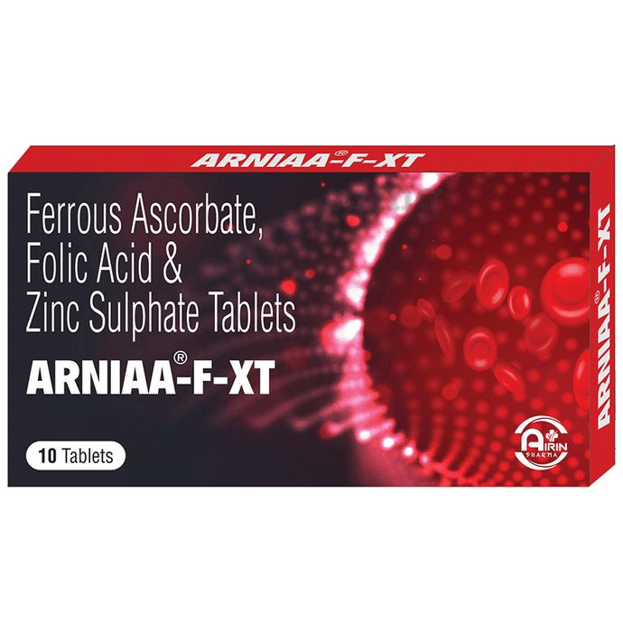 Arniaa-F XT Tablet is a health supplement that is primarily used to manage nutritional deficiency anaemia related to folic acid and iron deficiency. It can help increase red blood cells and folate levels in the body. It may also help in oxygen transportation and haemoglobin formation for increased energy and metabolism.