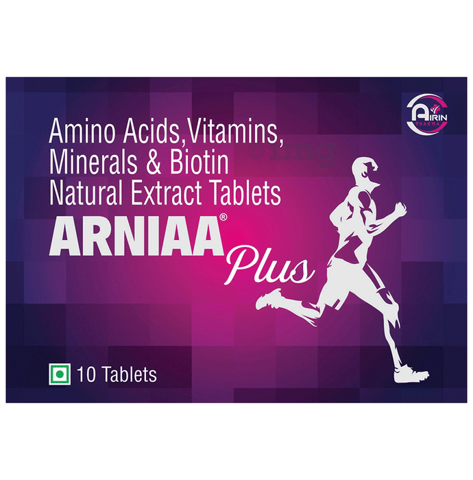 Introducing Arniaa Plus Tablet - packed with vitamins, minerals, amino acids, and biotin, offering comprehensive health benefits. This powerful combination supports overall well-being by promoting healthy hair, skin, and nails, boosting energy levels, and enhancing immune function. With its synergistic blend of nutrients, this tablet provides essential support for vitality and vitality, ensuring you feel your best every day.