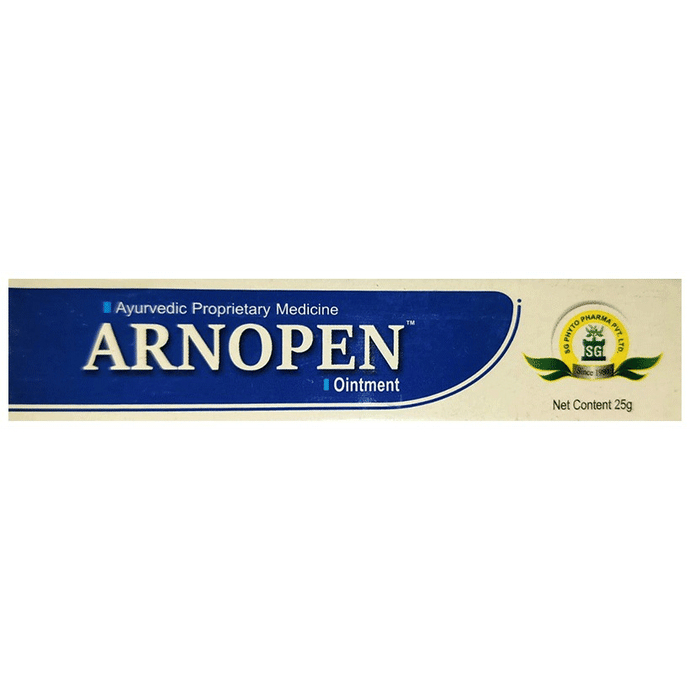 Arnopen ointment contains Mahanaryana Taila, Gultheria Oil, Nilgiri oil, Pudine ka Phool, Owa Phool, Turpentine oil, and Bhimseni Kapur as active ingredients. It acts as the analgesic, anti-inflammatory and is used as a fast pain reliever.