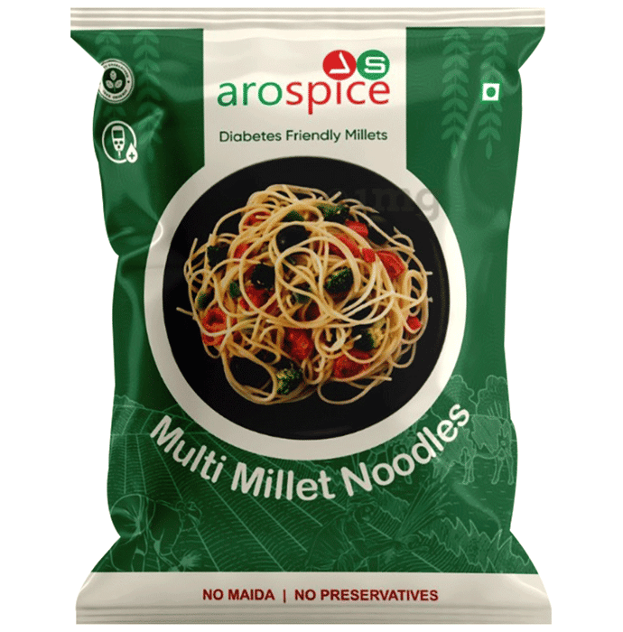 Arospice Multi Millet Noodle combines wholesome ingredients like wheat aata, jowar, foxtail, and little millet flour to create a nutritious and flavorful noodle base. The seasoning includes a blend of spices and condiments which help in enhancing taste and aroma to deliver a delightful culinary experience. Arospice multi-millet noodle is a nutritious blend of selected millets, rich in fibre and essential nutrients. Concentrated for quality and taste, with no added maida or preservatives. A wholesome delight for all ages.