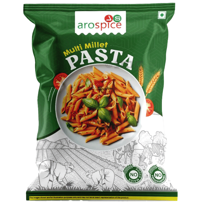 Arospice Multi Millet Pasta contains a healthy mix of nutritious ingredients like wheat aata, jowar, foxtail, and little millet flour to offer a wholesome pasta option. The seasoning includes a flavorful blend of spices, condiments, and natural ingredients, thereby enhancing taste and aroma for a satisfying meal experience. Arospice multi-millet pasta is a nutritious blend of selected millets, rich in fibre and essential nutrients. Concentrated for quality and taste, with no added maida or preservatives. A wholesome delight for all ages.