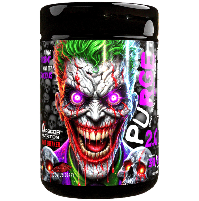 Arscor Nutrition Purge 2.0 Powder Devil's Berry is formulated as a pre-workout supplement designed for individuals seeking intense focus, explosive energy, and unmatched endurance. It is crafted for those who refuse to settle for mediocrity and can help deliver muscle pumps while supporting workout performance. It is intended for healthy adults and provides energy with every scoop, offering a strong pre-training support system.