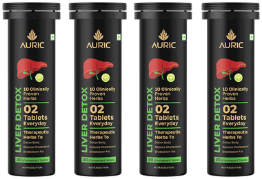 Auric Liver Detox Effervescent Tablet is a health supplement that aids in cleansing the body, regulating cholesterol levels, and breaking down fat. Detoxification of the body means detoxing the liver. Increased weight and cholesterol levels results in liver ailments, which causes reduced ability to handle cholesterol and break down fat. This formulation with its powerful ingredients facilitates liver detoxification for optimum performance.