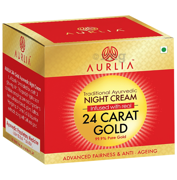 - Aurlia 24 Carat Gold Ayurvedic Night Cream contains original gold extracts that help bring shine and glow to the skin