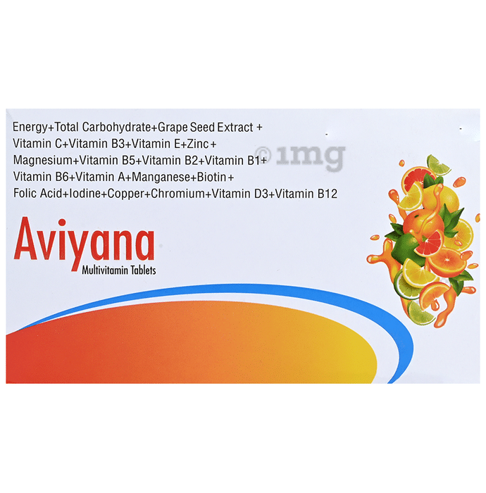 Aviyana Multivitamin Tablet is a daily supplement formulated with 23 essential vitamins and minerals to support overall health. This multivitamin for men and women has vitamin D3 and magnesium that helps to build bones and improve bone health. Multivitamins are crafted to fulfil the athletic body’s needs to replenish the lost nutrition during intense training sessions and to support quick recovery and protein synthesis. This supplement has calcium, vitamin D3, and magnesium that help build bones, support strong bone health, and ensures optimum muscle performance.