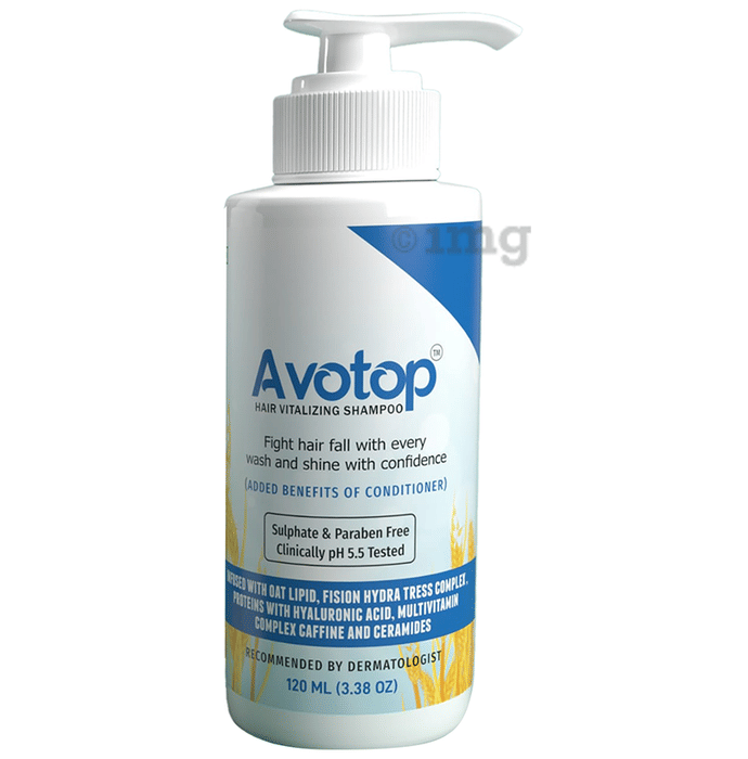 Avotop Hair Vitalizing Shampoo is a clinically tested, sulphate and paraben-free formula enriched with oat lipid, hyaluronic acid, caffeine, and ceramides. This nourishing shampoo is designed to help maintain scalp health while gently cleansing and promoting hair vitality. With a pH of 5.5, it maintains your scalp's natural barrier and is packed with a multivitamin complex to help support strong, shiny, and manageable hair. Suitable for all hair types, this dermatologist-recommended shampoo combines cleansing and conditioning benefits in one bottle for your daily hair care routine.