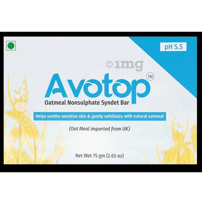 Avotop Oatmeal Nonsulphate Syndet Bar is formulated to provide gentle cleansing while maintaining skin comfort. Infused with oatmeal, it may help soothe sensitive skin and support moisture retention. The sulphate-free bar with a pH of 5.5 is designed to be mild and skin-friendly.