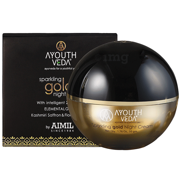 At night, the skin craves a rebirth, seeking solace and rejuvenation. Indulge in the enchantment of Ayouthveda Sparkling Gold Night Cream, an exquisite blend of 24k Nano Gold, Kashmiri Saffron, and three nurturing oils brimming with natural retinol (Vitamin A). Penetrating deep into the skin's core, it guards its supple resilience, quickens the pace of cellular regeneration, and awakens a glow that resonates with youthful skin’s true radiance. The 24k Nano Gold, revered for ages in Ayurveda, is hailed as "The Key to Youth" for its beautifying, illuminating, and healing properties. It elegantly merges with your skin revealing a luminous golden allure. Immerse yourself in this mystical night ritual to unveil a complexion that shimmers with a testament to timeless beauty.