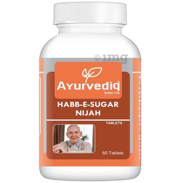 Ayurvediq Better Life Habb-E-Sugar Nijah Tablet is a herbal health supplement which helps to boost immunity. It helps manage blood sugar levels and supports the regulation of insulin sensitivity in diabetic and pre-diabetic patients. It helps to control food cravings. It also helps prevent weakness caused by diabetes. It gives strength to beta cells in stomach, kidney, eyes and pancreas. It is suitable for elderly people with diabetes issues. It also helps to manage conditions like frequent urination and aids in weight management
