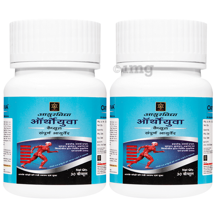 Ayurvidha Orthoyuva Capsule (30 Each) Bottle is a natural Ayurvedic formulation for bone and muscle health and wellness. It comprises more than 10 natural herbs and 13 herbal extracts. It infuses natural ingredients like suranjan, salai guggul, shuddha guggul, kulanjan, hadjod, ashwagandha, chopchini, haldi, kushta, shilajit, etc. that might help in reducing inflammation and maintaining bone health. The capsule can provide fast joint pain relief and strengthen muscles.