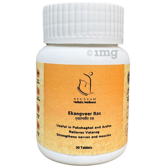 Ayusyam Ekangveer Ras Tablet is an ayurvedic formulation designed to help support nerve health, muscle strength, and balance Vata dosha. This blend includes ingredients traditionally used for managing muscle and joint discomfort, supporting mobility, and supporting overall vitality.