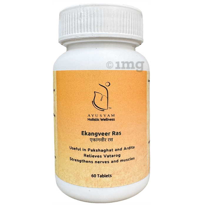 Ayusyam Ekangveer Ras Tablet is an ayurvedic formulation designed to help support nerve health, muscle strength, and balance Vata dosha. This blend includes ingredients traditionally used for managing muscle and joint discomfort, supporting mobility, and supporting overall vitality.