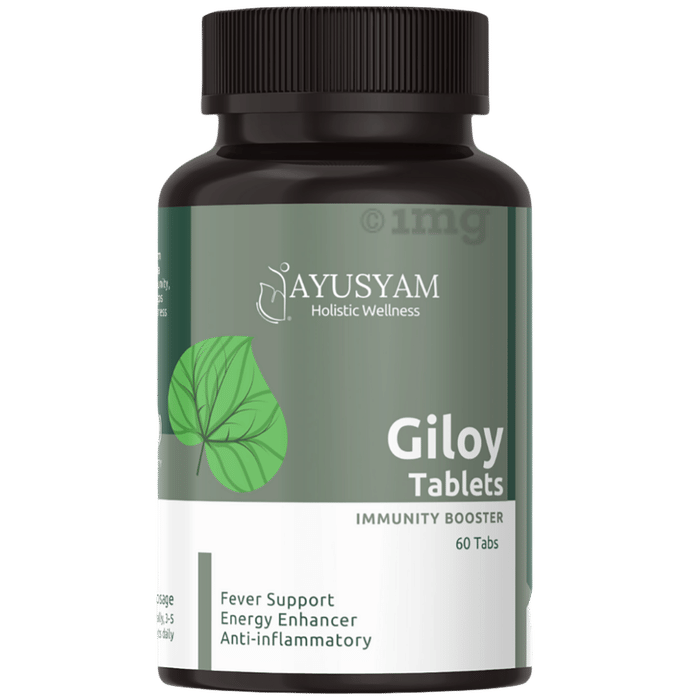 Ayusyam Giloy Tablet is prepared from Giloy (Tinospora cordifolia) stem extract. It may help support immune balance, manage vitality, and contribute to overall well-being when taken as part of a balanced lifestyle.