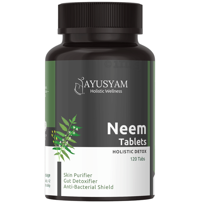 Ayusyam Neem Tablet is an Ayurvedic formulation containing pure Neem (Azadirachta indica) fruit extract. It is designed to align with holistic wellness practices and can support overall internal cleansing and skin health. The presence of Neem can complement natural detox processes and help maintain microbial balance. With its carefully measured composition, this formulation can support daily wellness routines aimed at internal clarity, balance, and natural resilience.
